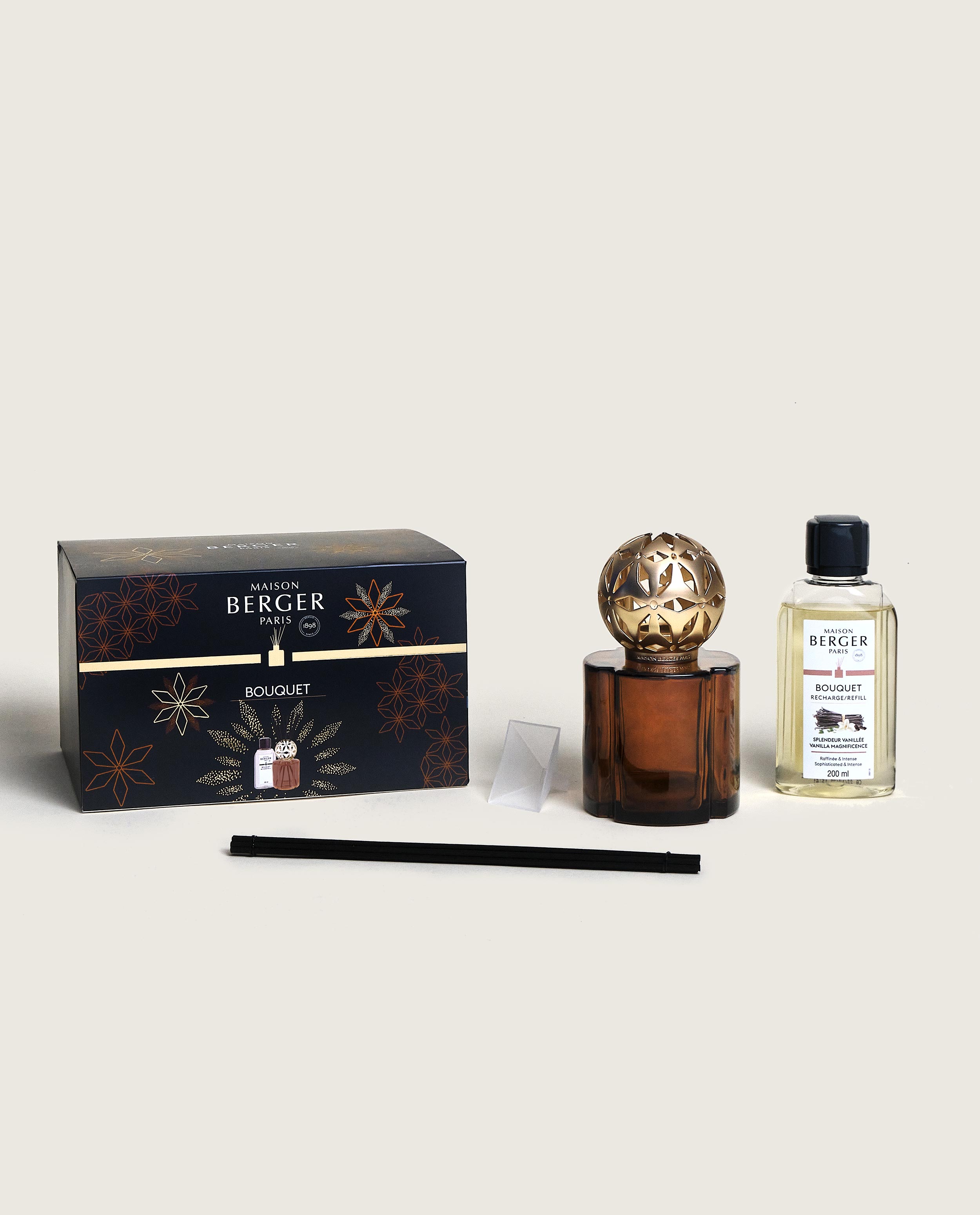 Откройте для себя дизайнерский Аромадиффузор с палочками "Помелис" в шоколадном цвете со сменным ароматом "Ванильное Великолепие" от бренда Maison Berger Paris. Элегантный набор в праздничной упаковке, привносящий нотку роскоши. Аромадиффузор с мягкими линиями в элегантном шоколадном цвете и с впечатляющей золотистой оправой, созданная французским дизайнером Сильви де Франс, вдохновлена памандером — культовым объектом в форме апельсина, который в прошлом наполнял дома ароматом во время праздников.