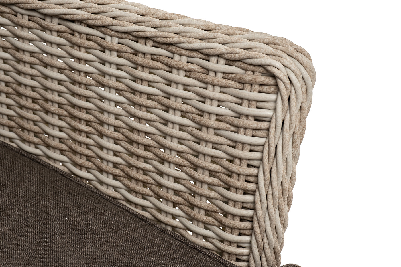 В садовое кресло укомплектовывается мягкими подушками. Они пошиты из износостойкого полиэстера серо-коричневого оттенка с плотностью 230гр/м2. Защитные свойства синтетического материала усиливаются благодаря влагоотталкивающей пропитке.