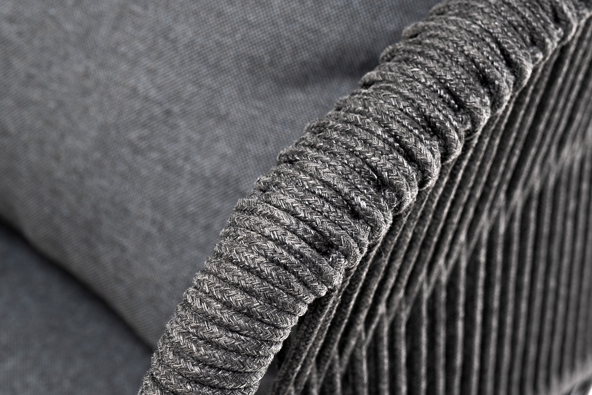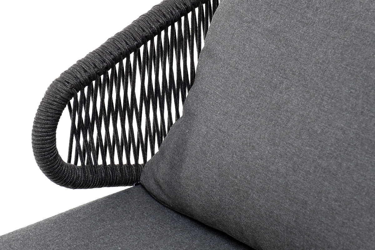 "Милан" кресло плетеное из роупа, каркас алюминий темно-серый (RAL7024) муар, роуп темно-серый круглый, ткань темно-серая 027