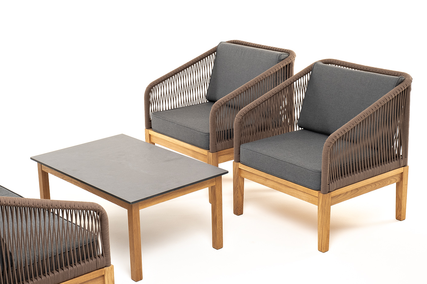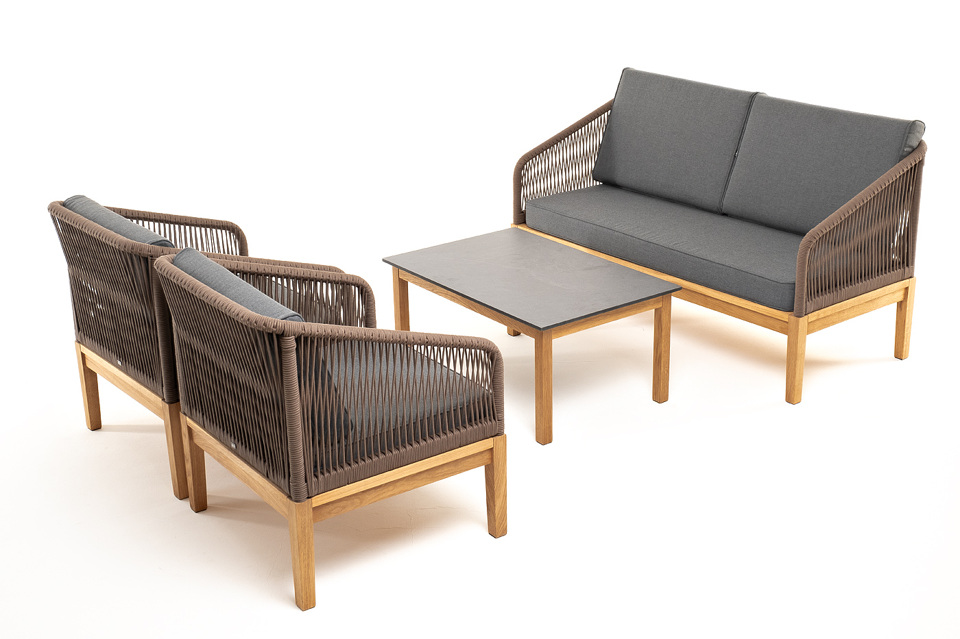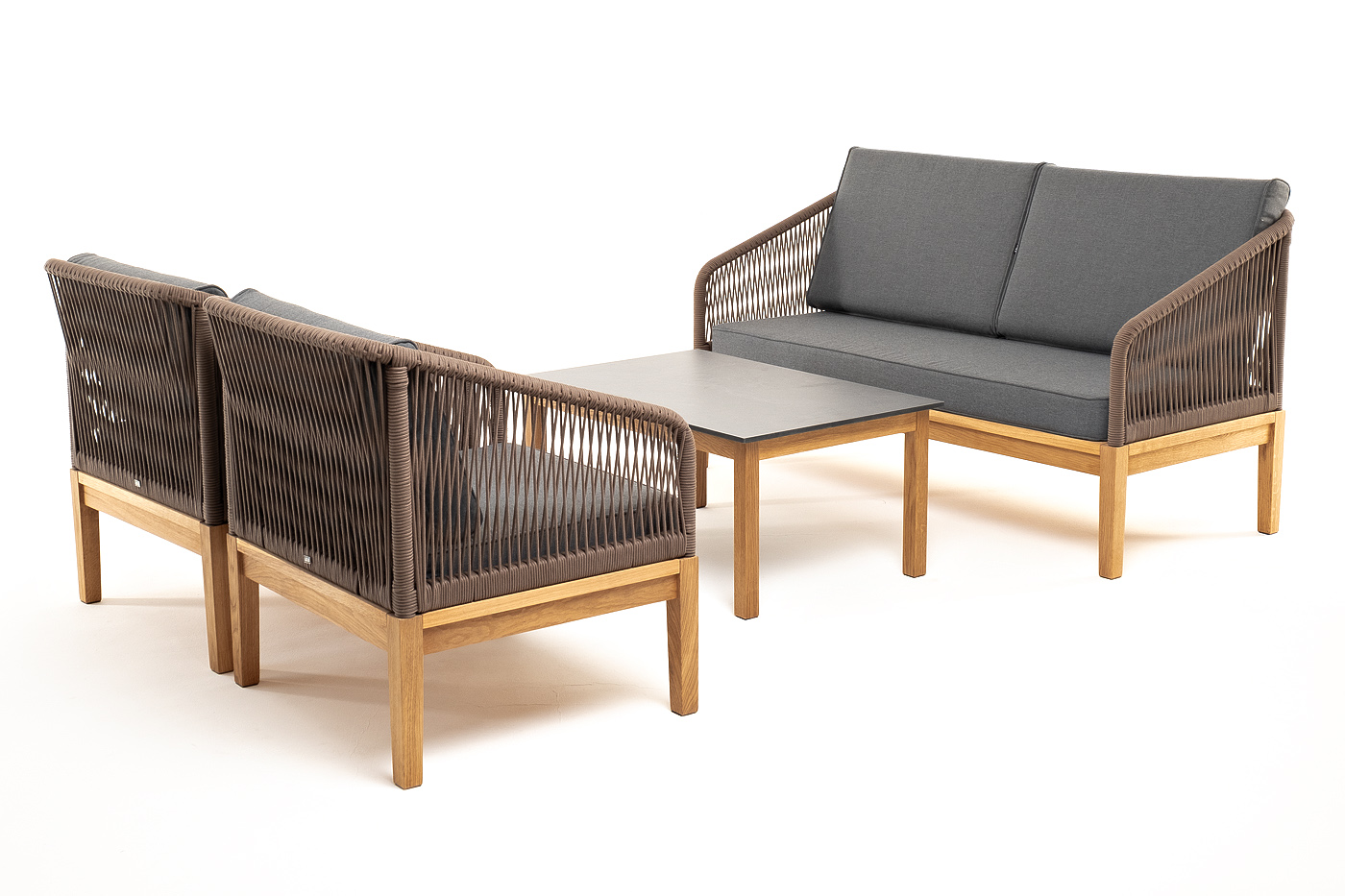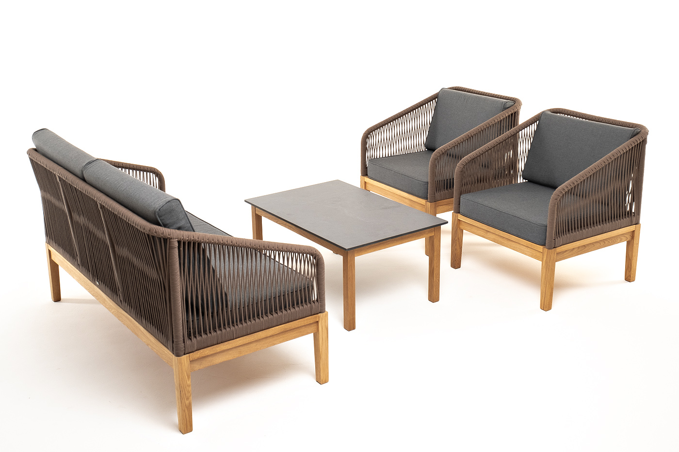 "Канны" лаунж-зона 4-местная из роупа со столиком "Канны" (серый гранит), основание дуб, роуп коричневый