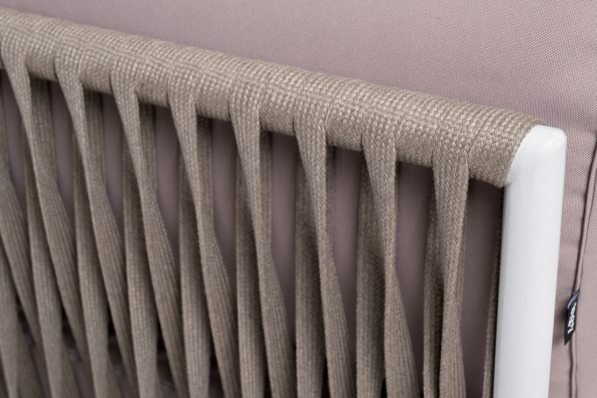 "Касабланка" левый модуль плетеный из роупа, каркас алюминий светло-серый (RAL7035) муар, роуп серо-коричневый 23мм, ткань бежевая 052