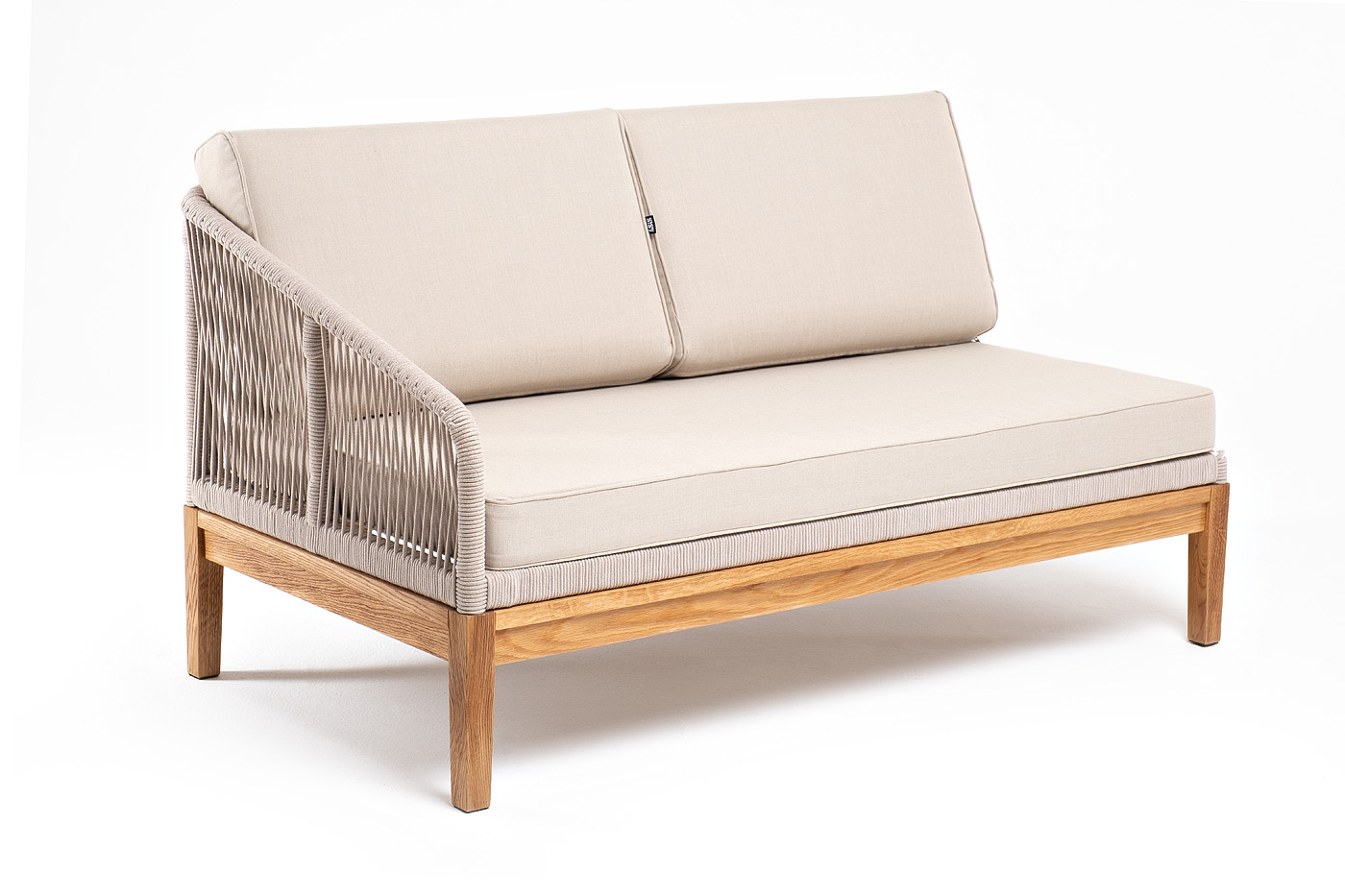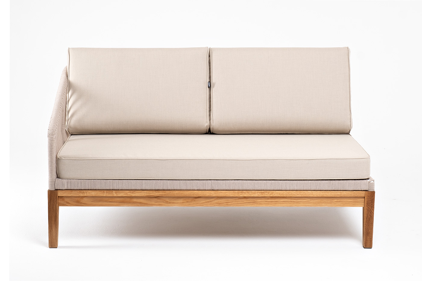 "Канны" правый модуль плетеный из роупа, основание дуб, роуп бежевый круглый, ткань бежевая 052