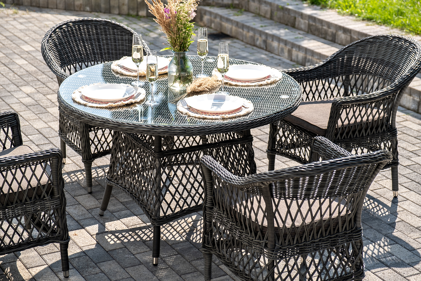 "Дольче" обеденная группа из искусственного ротанга, цвет графит