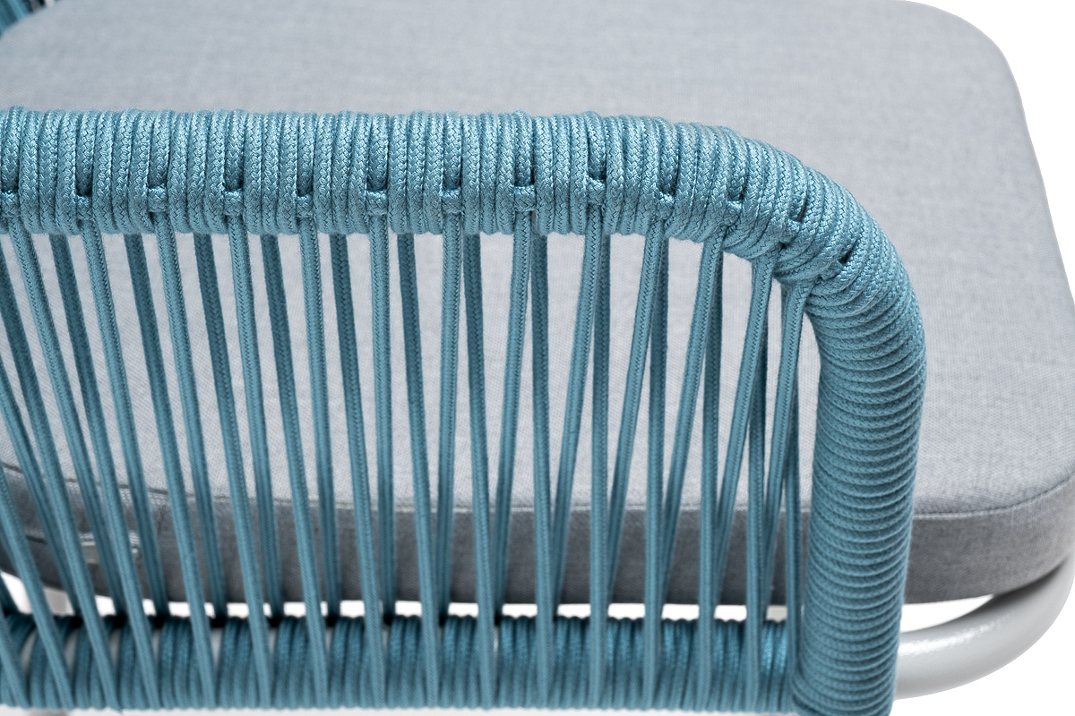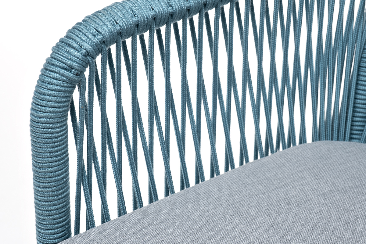 "Лион" стул плетеный из роупа, каркас из стали светло-серый (RAL7035) муар, роуп бирюзовый круглый, ткань светло-серая