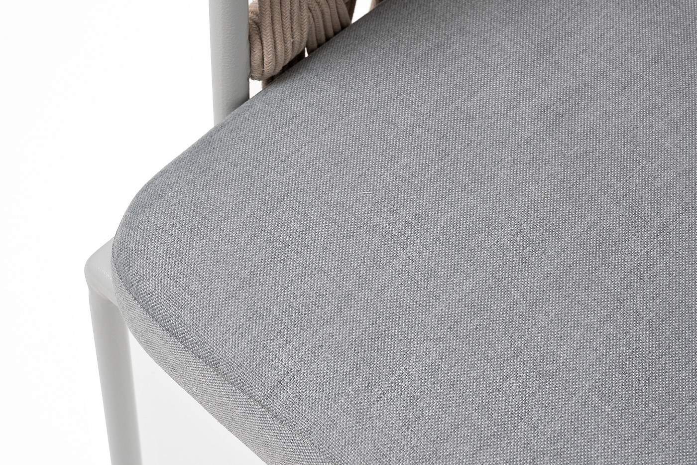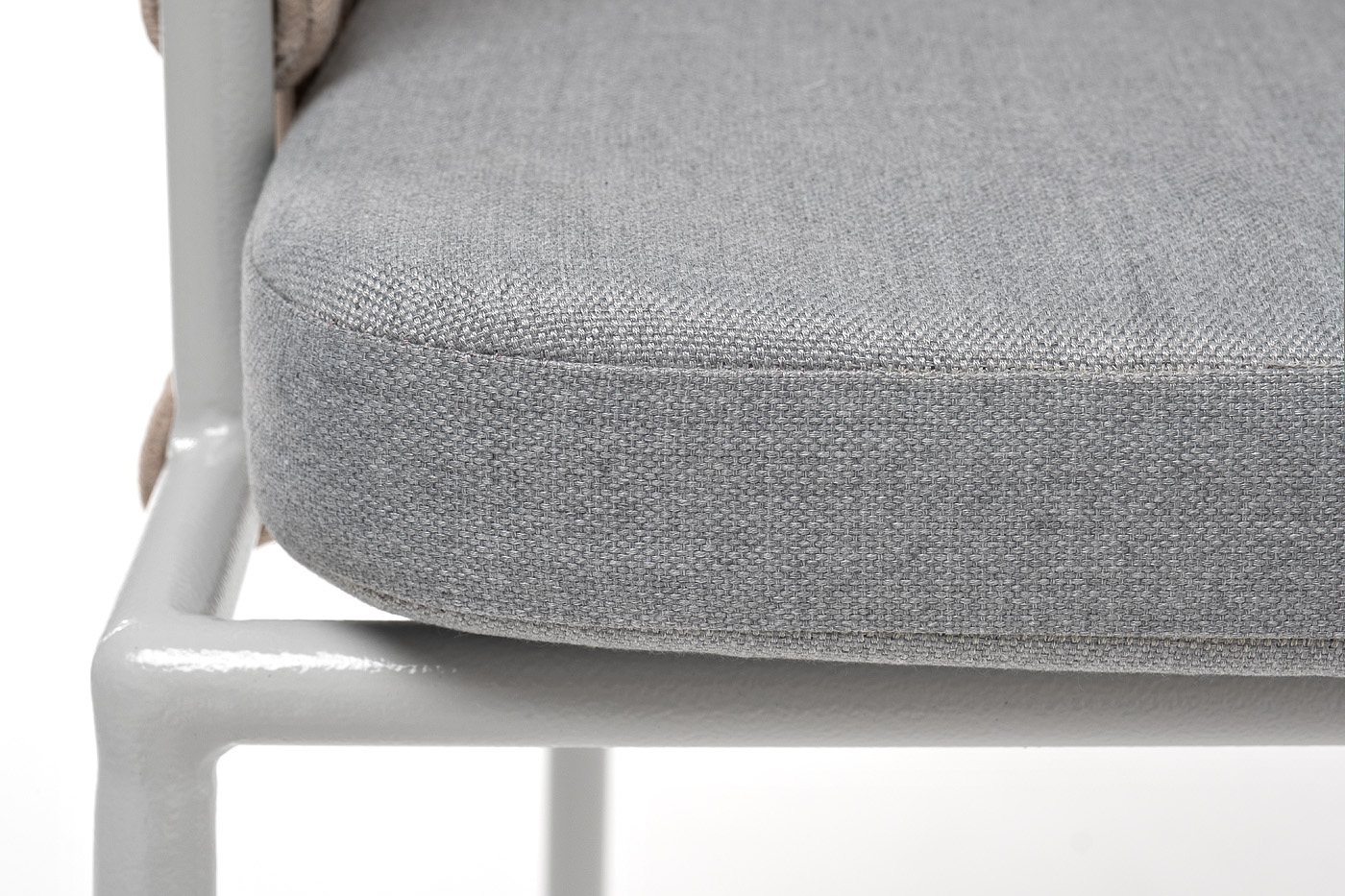 "Диего" стул плетеный из роупа, каркас из стали светло-серый (RAL7035) муар, роуп бежевый круглый, ткань светло-серая