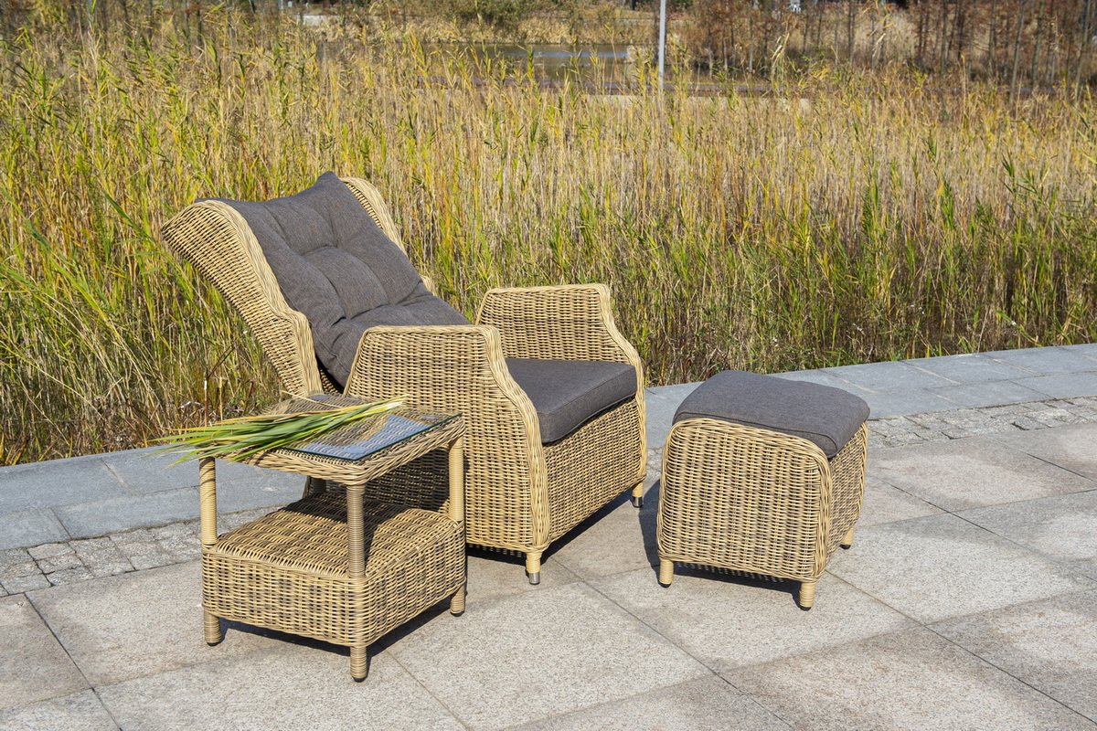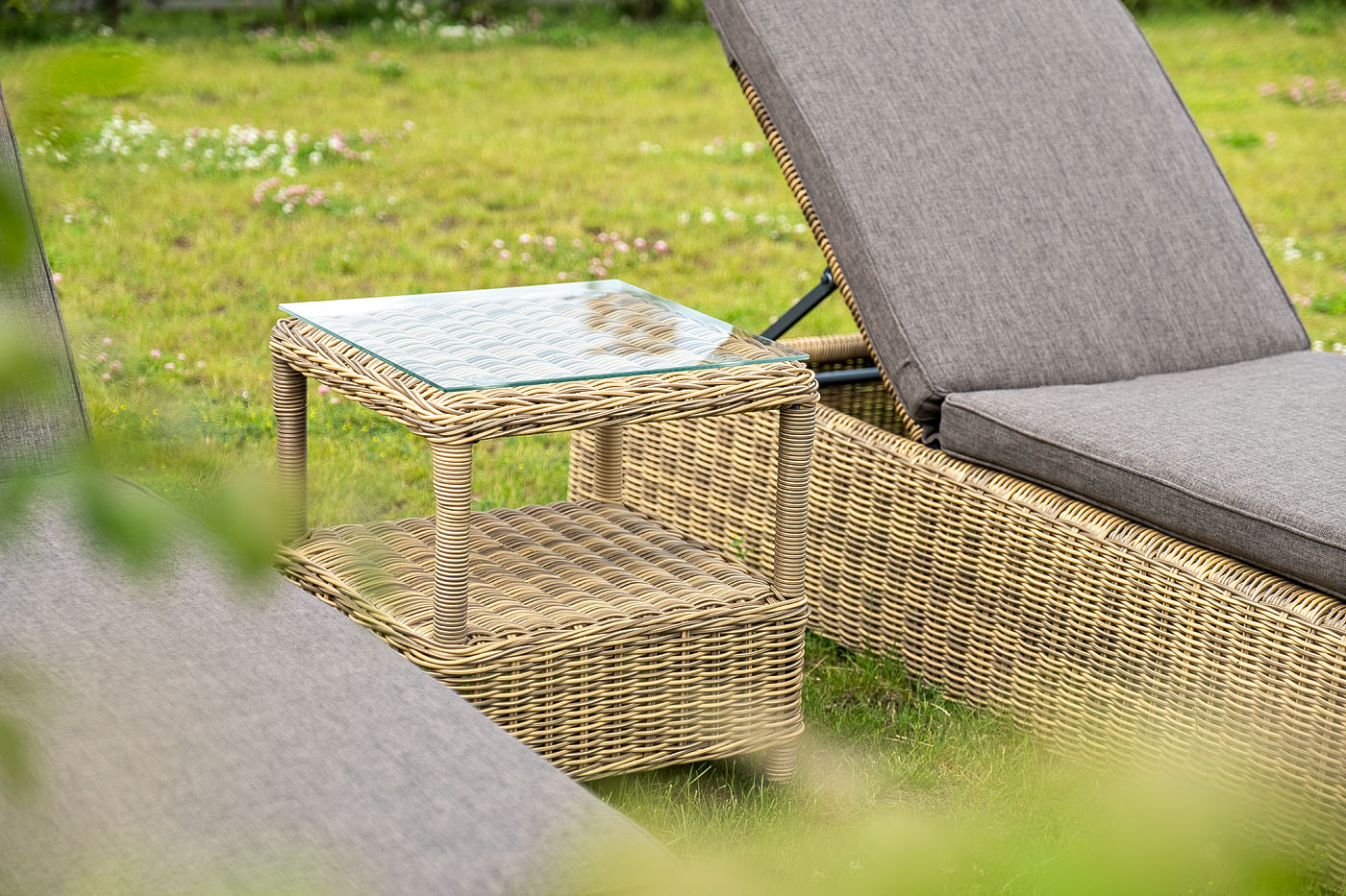 Кофейный столик «Форио» предназначен для комфортного обустройства зоны с ограниченным пространством, хорошо сочетается с шезлонгами и небольшими креслами.